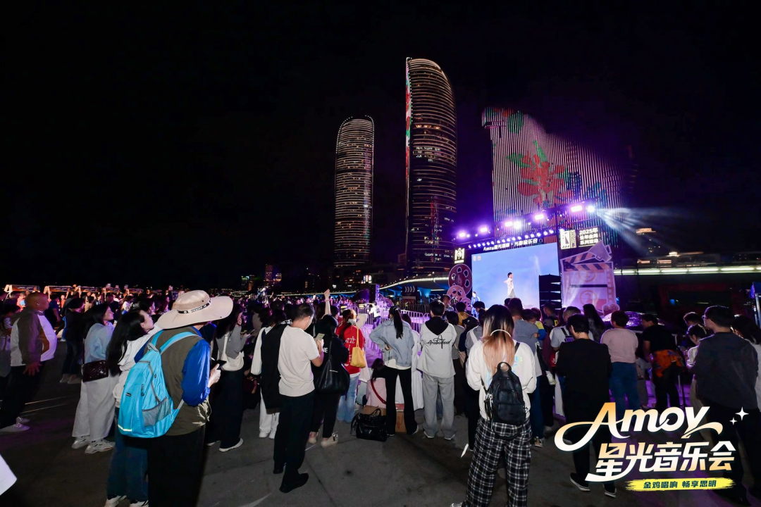 本场音乐会还迎来另一个高光时刻——Amoy星光音乐会主题曲《金鸡在思明》正式发布。歌曲由“Amoy 星光歌手季”15强选手首次唱响,旋律中融入了厦门的城市记忆与影视情怀,既是对过往十场音乐会的回顾与沉淀,更承载着对厦门影视与音乐事业高质量发展的美好期许。