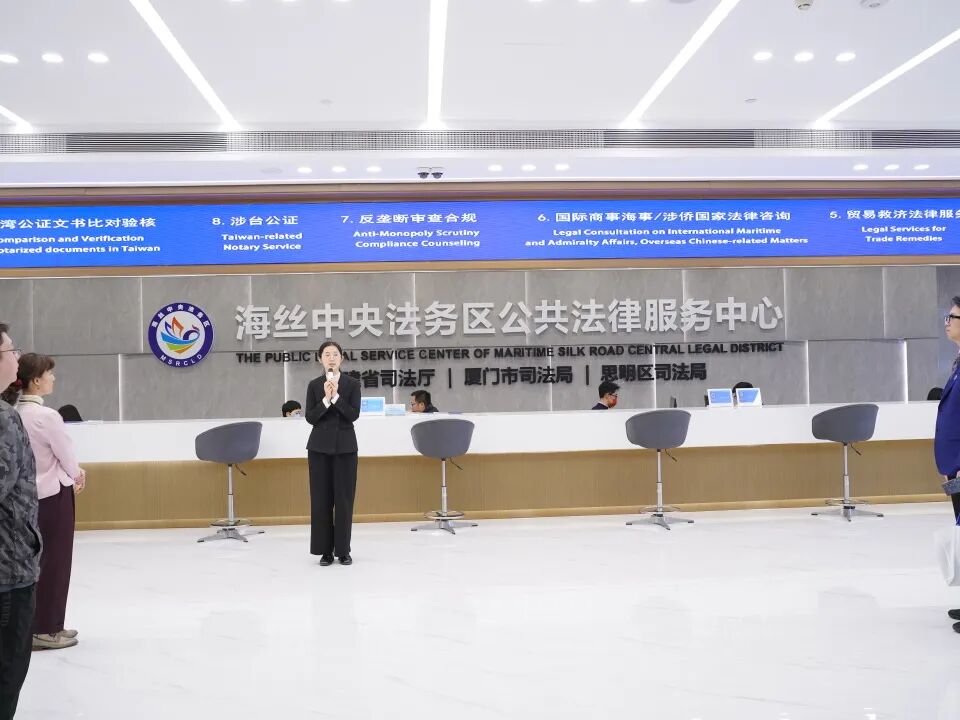 从跨境法律服务流程介绍到公共法律服务窗口功能讲解,从智能法治服务设备演示到法商融合案例展示,大家在一步一景的实地观摩中,直观感受了海丝中央法务区在统筹推进国内法治与涉外法治中的重要作用,对“法治赋能经济发展”的实践路径有了更深刻的认知。