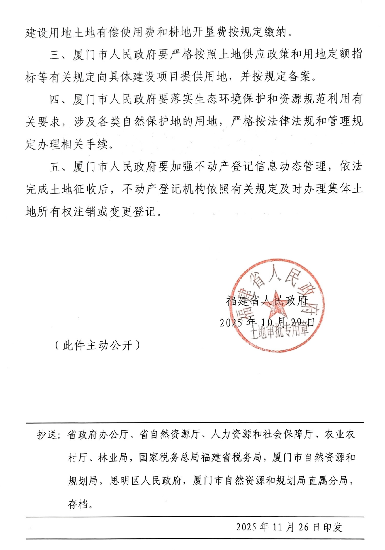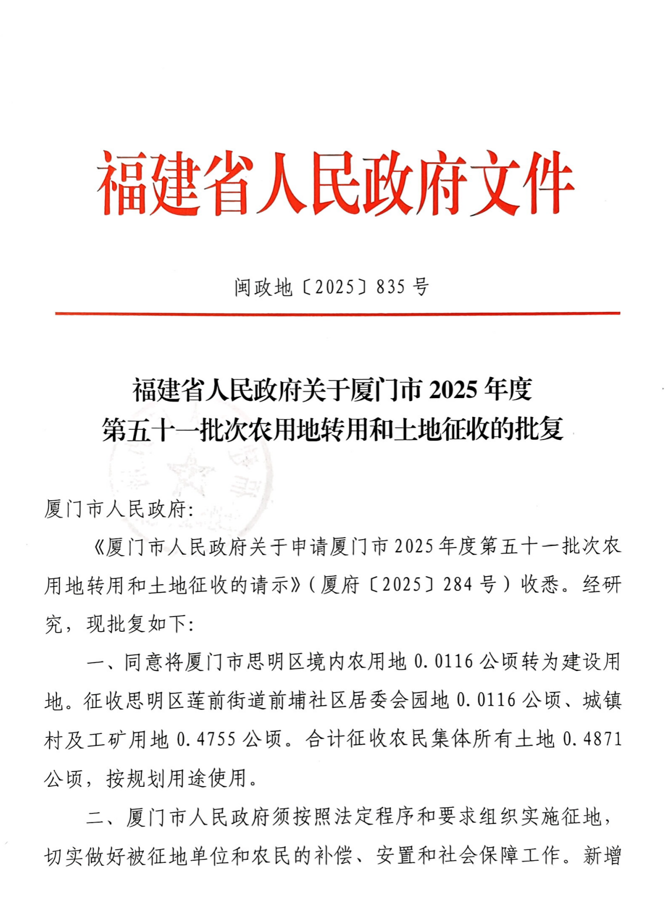 附件:福建省人民政府关于厦门市2025年度第五十一批次农用地转用和土地征收的批复(闽政地〔2025〕835号)