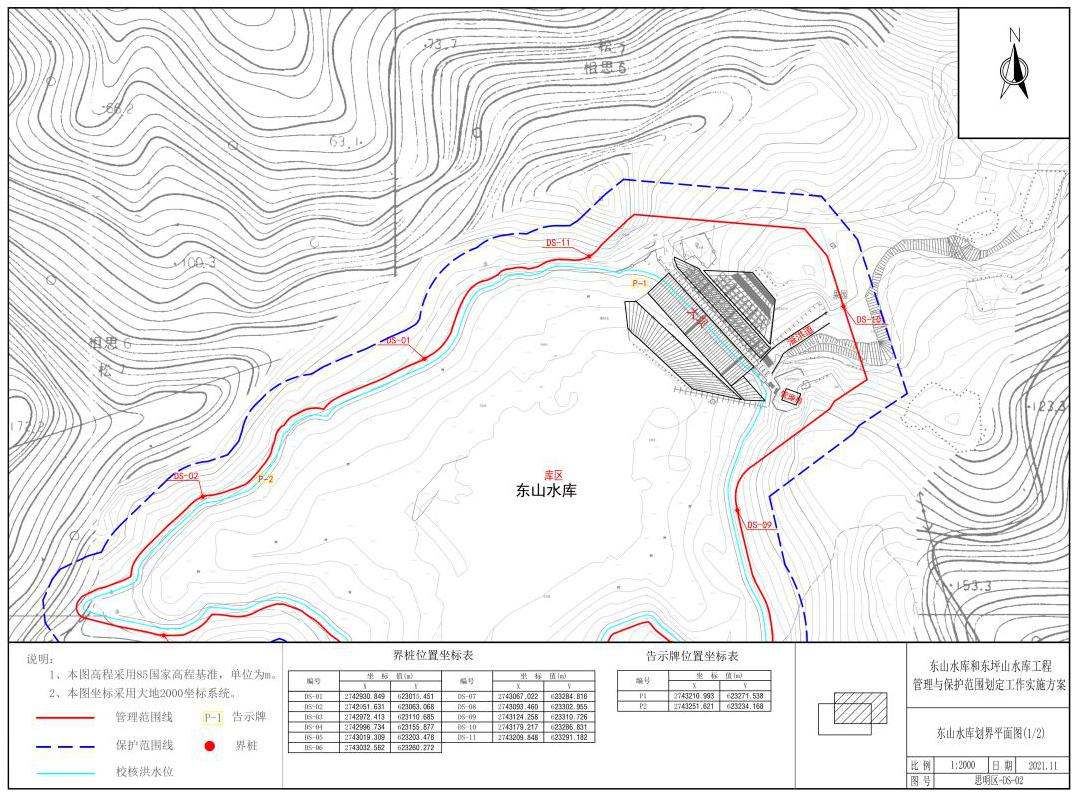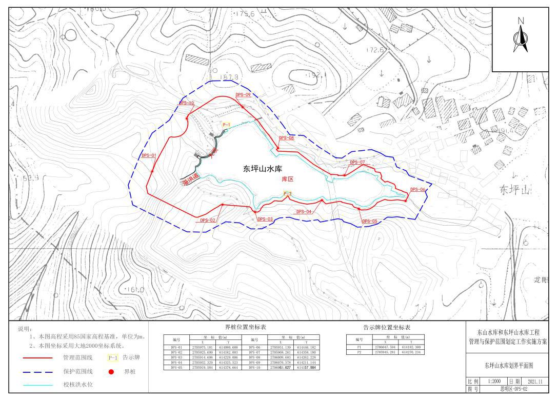 2.东坪山水库划界总平面图和东坪山水库划界平面图