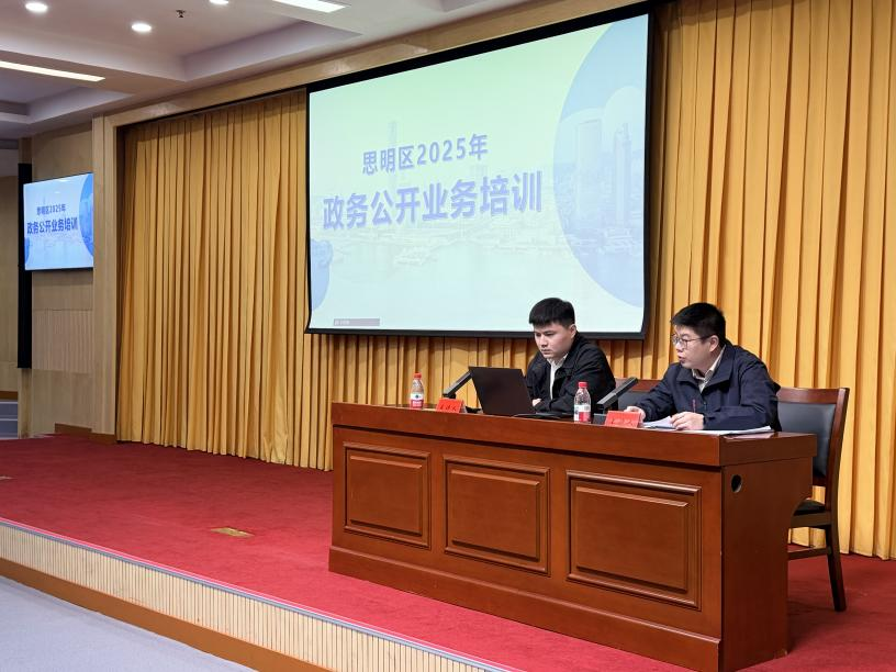 为贯彻落实国务院办公厅、福建省政府办公厅、厦门市政府办公厅关于政务公开工作的要求,持续做好我区政务公开工作,思明区于12月24日举办2025年全区政务公开业务培训。各街道、区直各部门相关科室负责人及具体工作人员参加培训。