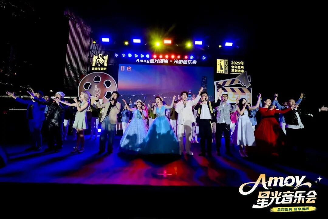 本场音乐会还迎来另一个高光时刻——Amoy星光音乐会主题曲《金鸡在思明》正式发布。歌曲由“Amoy 星光歌手季”15强选手首次唱响,旋律中融入了厦门的城市记忆与影视情怀,既是对过往十场音乐会的回顾与沉淀,更承载着对厦门影视与音乐事业高质量发展的美好期许。