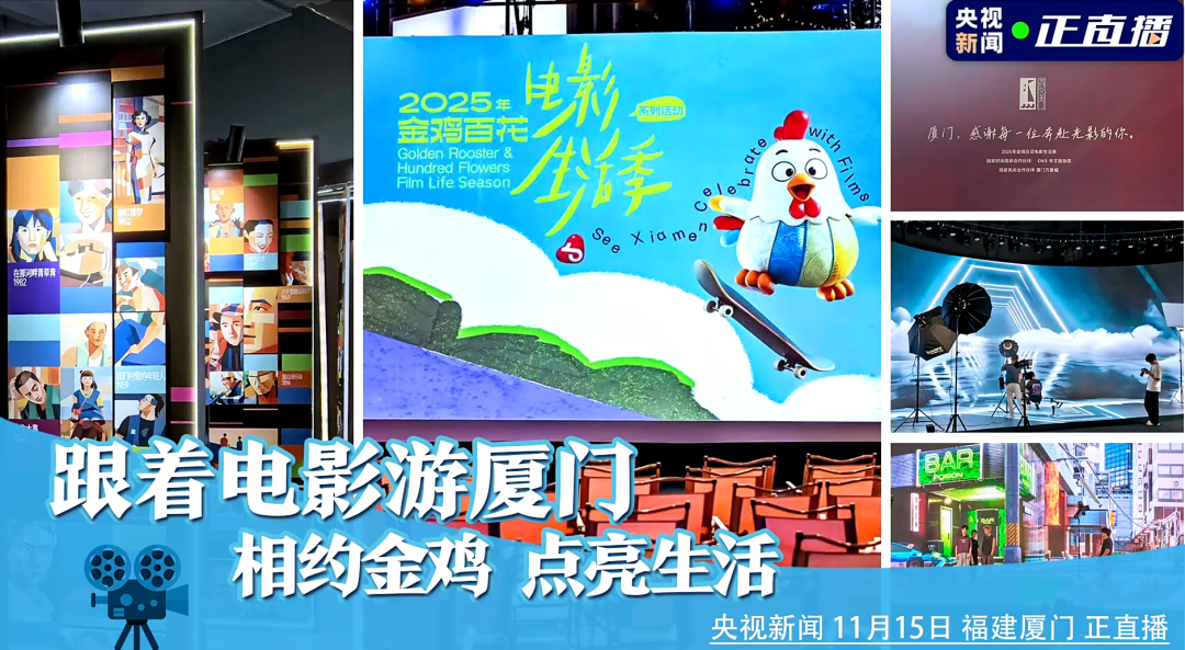11月15日,央视新闻《跟着电影游厦门 | 相约金鸡 点亮生活》将直播镜头聚焦思明区的商圈、影院等场所,带领全国观众一睹“金鸡”解锁生活新范式的生动画面。