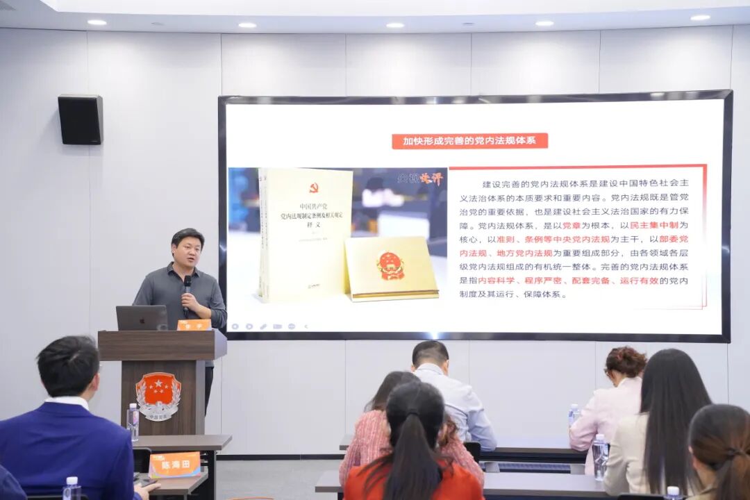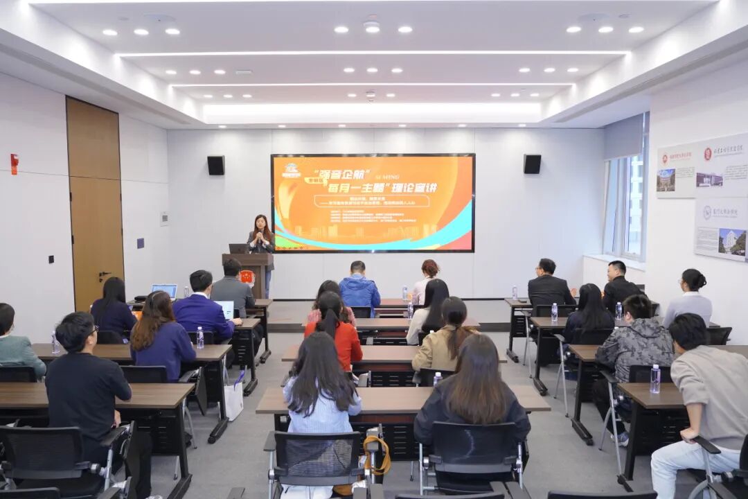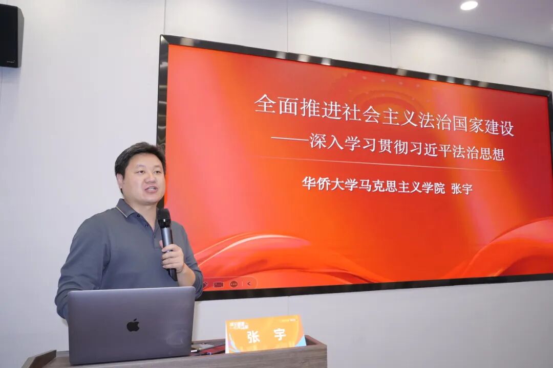 在专家宣讲环节,华侨大学马克思主义学院副教授张宇以《全面推进社会主义法治国家建设——深入学习贯彻习近平法治思想》为题,深入浅出讲解习近平法治思想的核心要义、精神实质与实践要求,并结合案例详细阐述了法治建设对企业发展、社会治理的重要意义,让参会人员对习近平法治思想有了更深刻、更系统的了解。