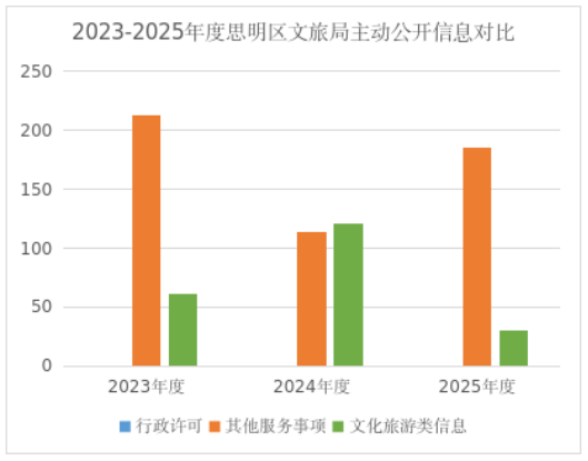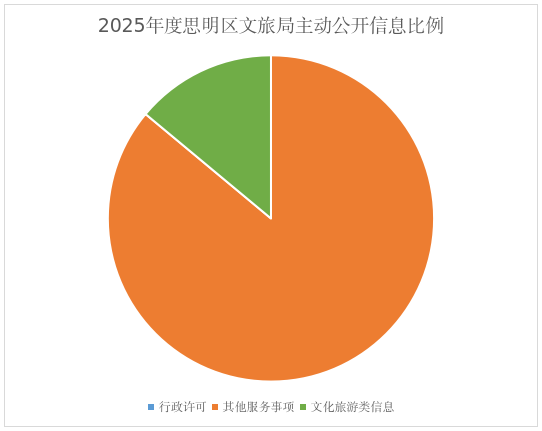 2025年度我局为规范政府信息公开内容,提高信息公布主动性、权威性和时效性。及时主动在思明区政府网站公布相关政府信息。截至2025年12月31日,我局在思明区政府网站主动公开信息数共 234 条,其中行政许可0条(相关750条已在信用中国福建厦门思明发布公示)其它服务事项670条(其中485条涉审批公示信息已在信用中国福建厦门思明发布公示,剩余185非涉审批服务信息已在区政府网站公开),文化旅游类信息30条。2025年度,我局重新修订发布了《思明区进一步促进影视产业发展若干意见》及《思明区进一步加快旅游和文体娱乐业发展扶持奖励若干意见》。相关意见于2024年度形成征求意见稿在思明区政府网站专栏对外公开征求意见,在定稿后予以解读并公开。