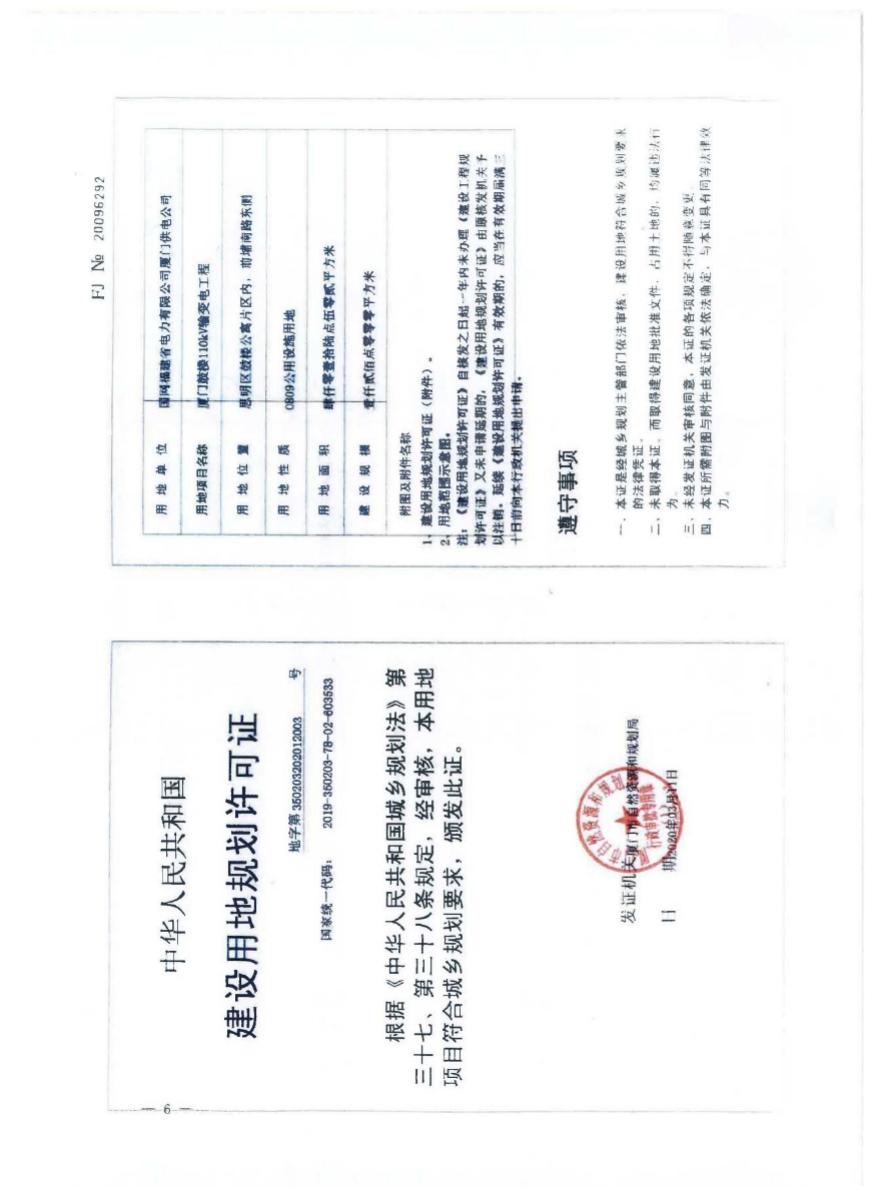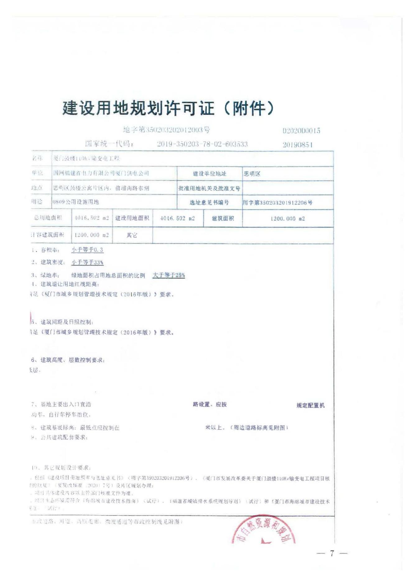 附件:厦门市自然资源和规划局《中华人民共和国建设用地规划许可证》(地字第350203202012003)