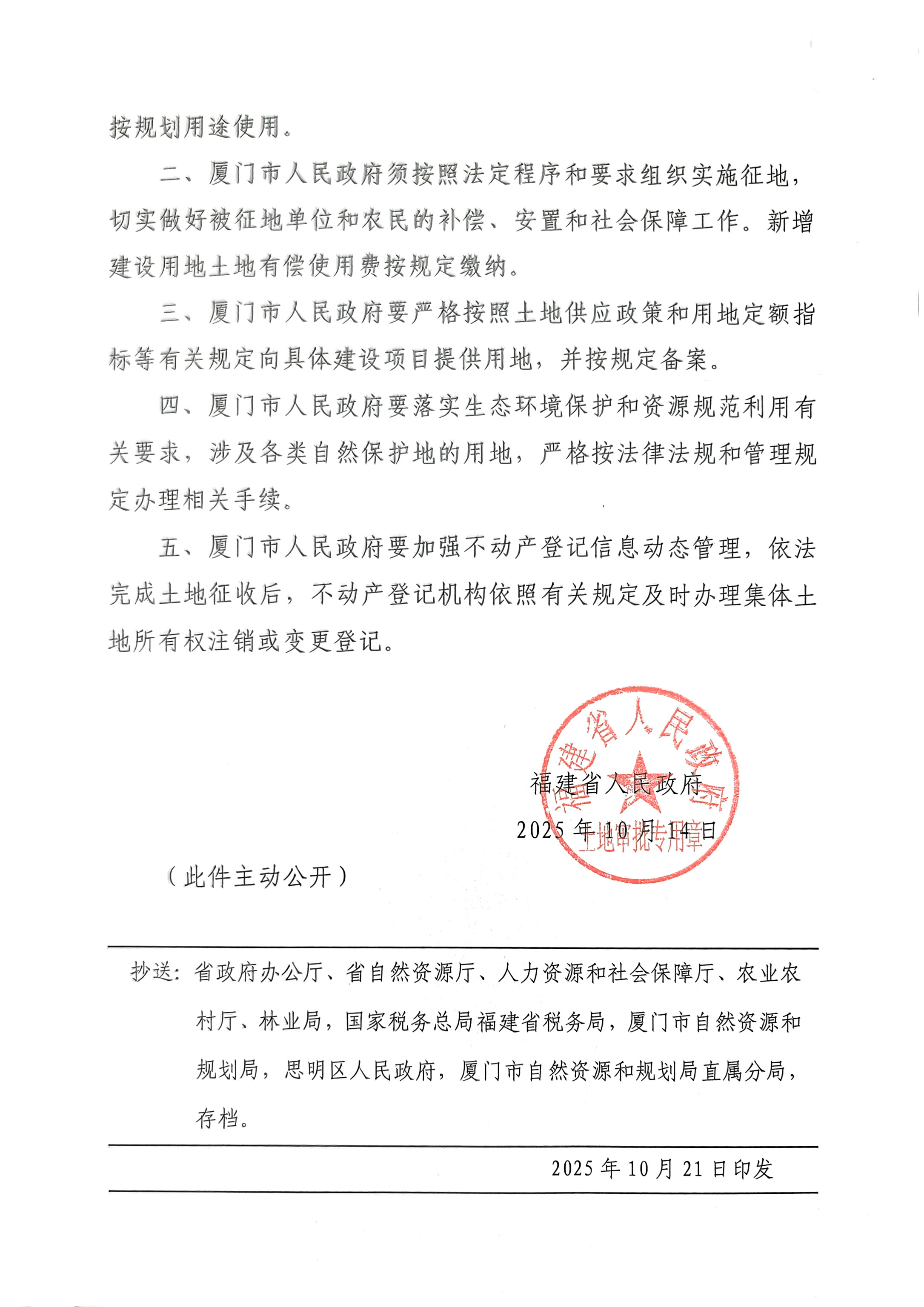 附件:福建省人民政府关于厦门市2025年度第六十八批次农用地转用和土地征收的批复(闽政地〔2025〕780号)