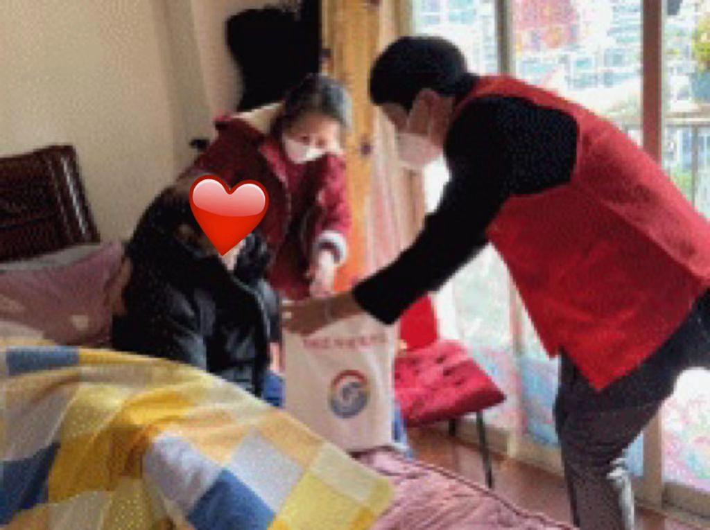 梧村街道东坪社区书记和网格员入户为80岁以上合并基础病的老年人等重点人群送去饱含暖意的防疫健康包,为他们筑牢防疫健康屏障。收到健康包的老人家握着社区工作人员的手说:“感谢政府想到老人家,时刻关心我们这些老年人。”