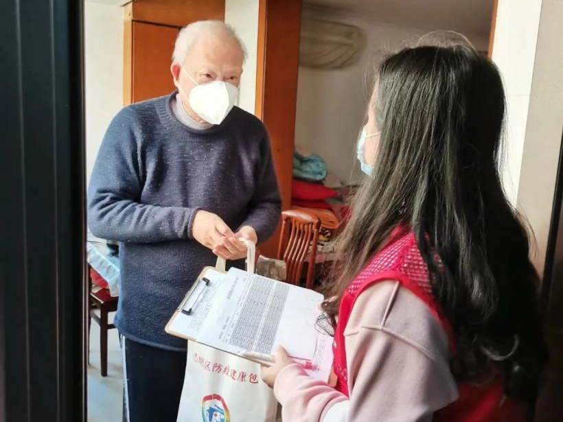 “这些药现在都很难买到,社区还给我们免费派发,真的很及时,也让我们深受感动、心里暖暖的。”90岁的陈奶奶看着眼前的防疫健康包,动情说道。