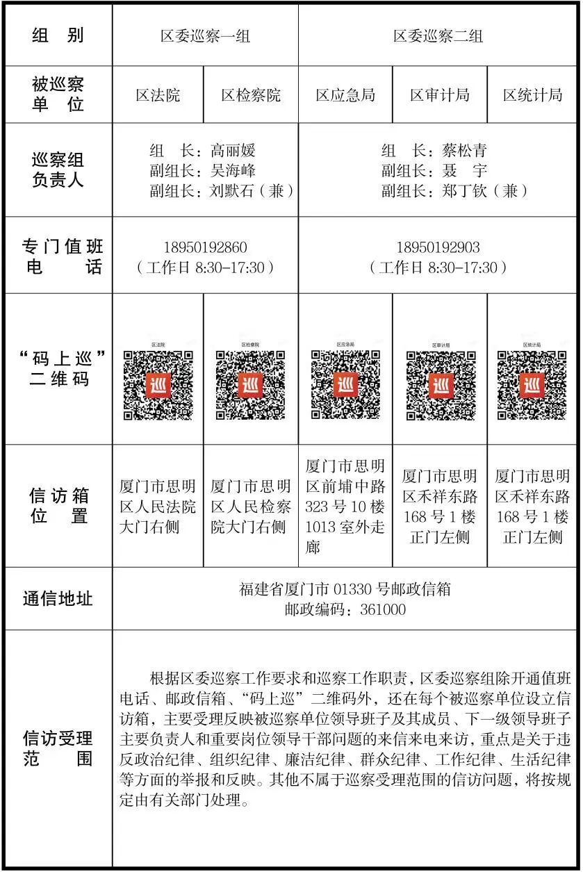十二届思明区委第十一轮第二批巡察工作12月15日启动