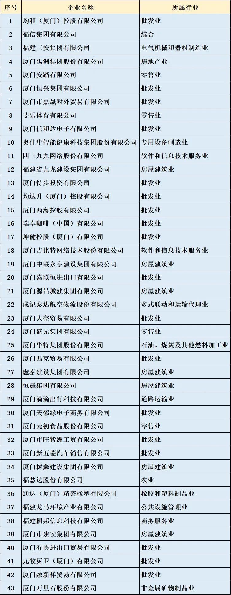 其中,43家思明企业上榜