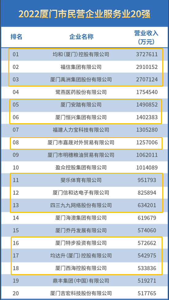 “2022厦门市民营企业服务业20强”