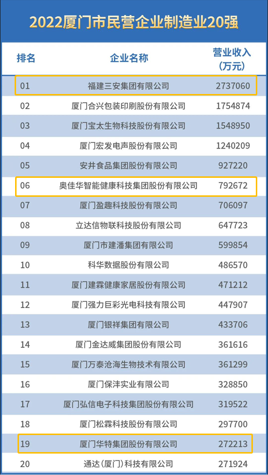 “2022厦门市民营企业制造业20强”