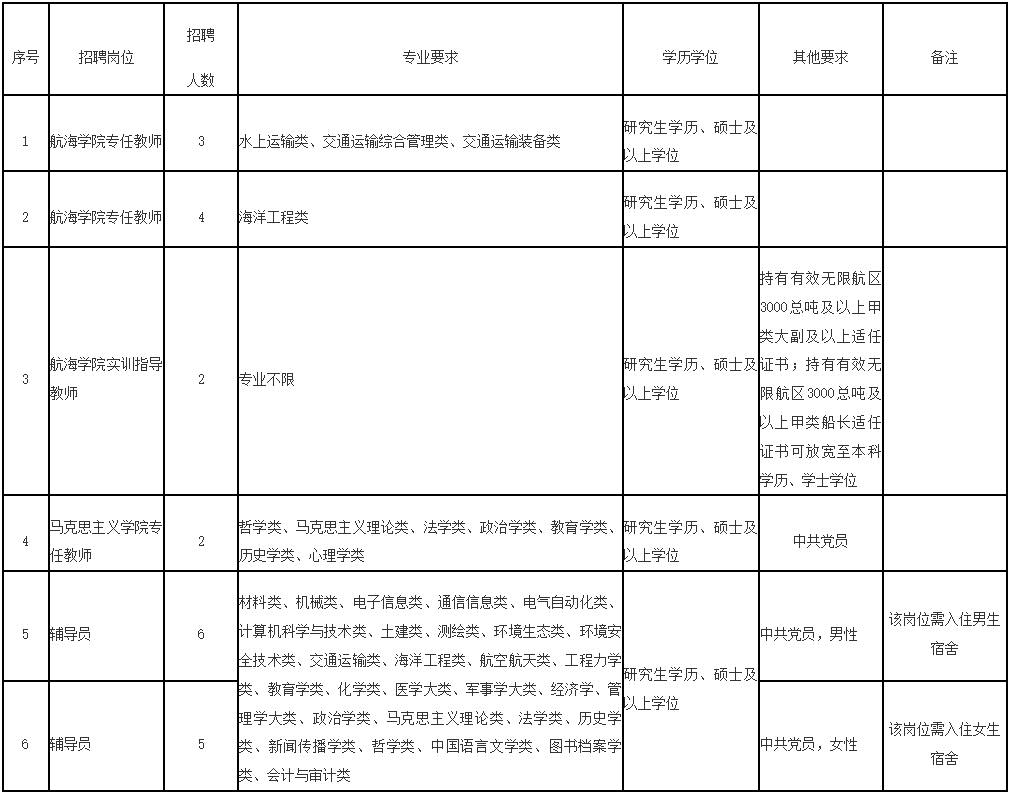 3.岗位年龄要求:18周岁以上、35周岁以下(在1986年4月至2004年4月期间出生)。岗位3持有有效无限航区3000总吨及以上甲类船长及以上适任证的报考者年龄放宽至40周岁(1981年4月至2004年4月期间出生)。