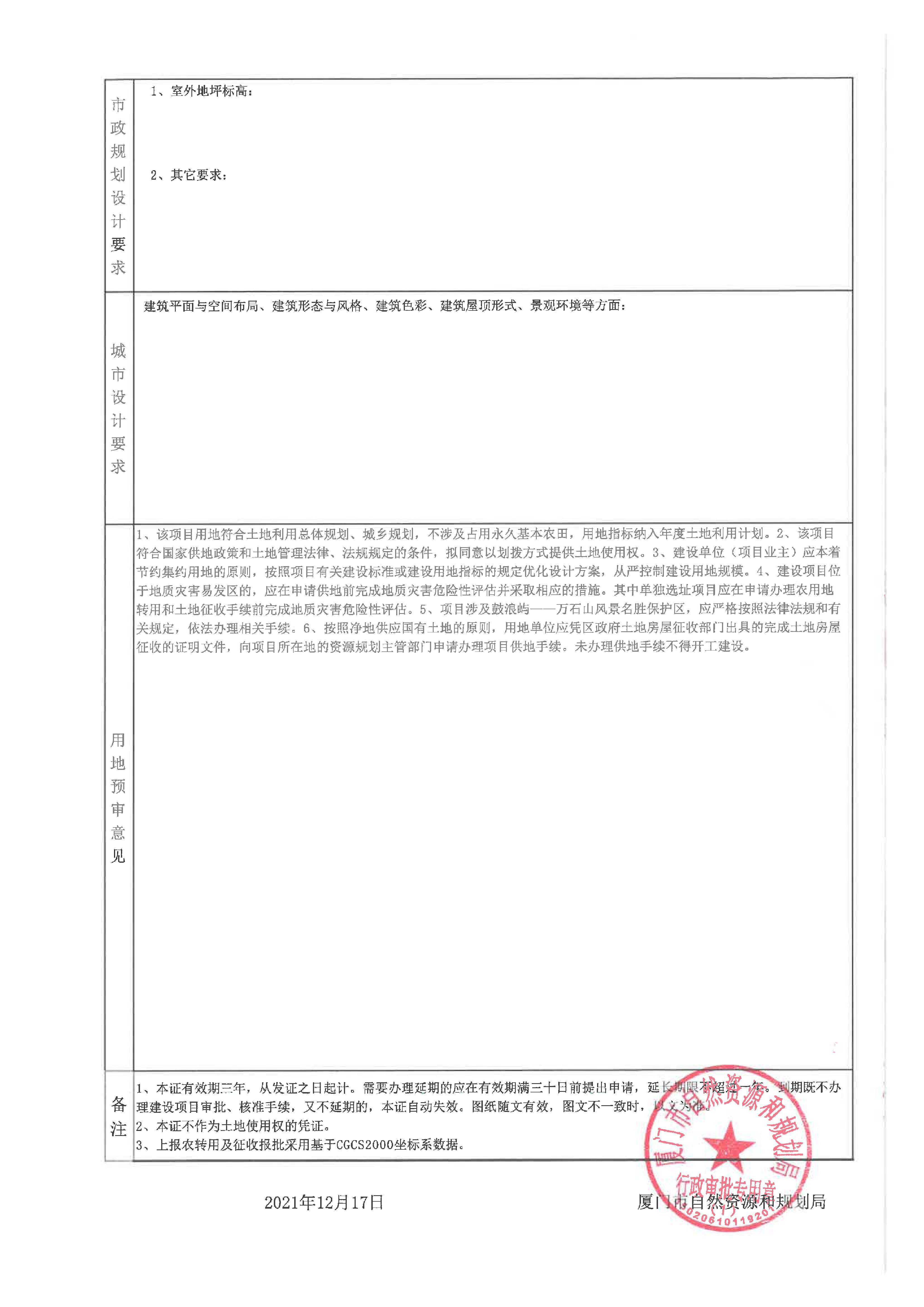 附件:建设项目用地预审与选址意见书及用地范围图(用字第350200202100359号)