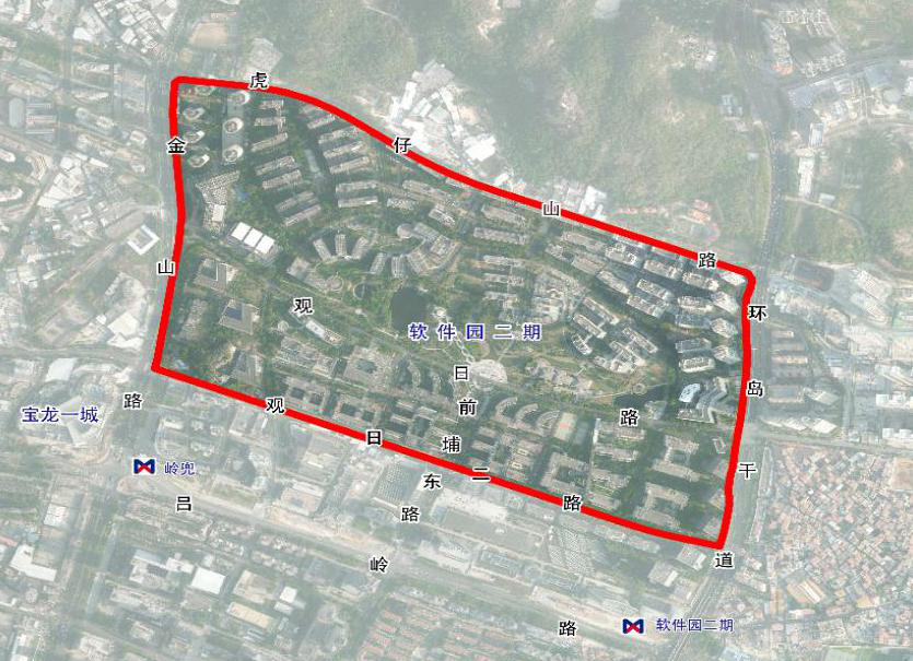 厦门软件园二期位于思明区东部,由环岛干道、观日二路、金山路、虎仔山路等道路环绕,园区占地约1平方公里,建筑总面积约164万平方米,是全市软件信息业核心园区。